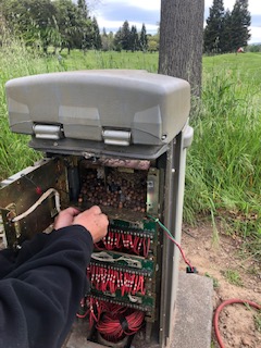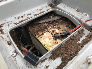 Another item I have been busy with is inspecting, cleaning, and repairing the irrigation satellites throughout the golf course. If they are not cleaned out and inspected regularly, insects and mice can take over and create problems with the internal wiring as you can see in the following pictures.