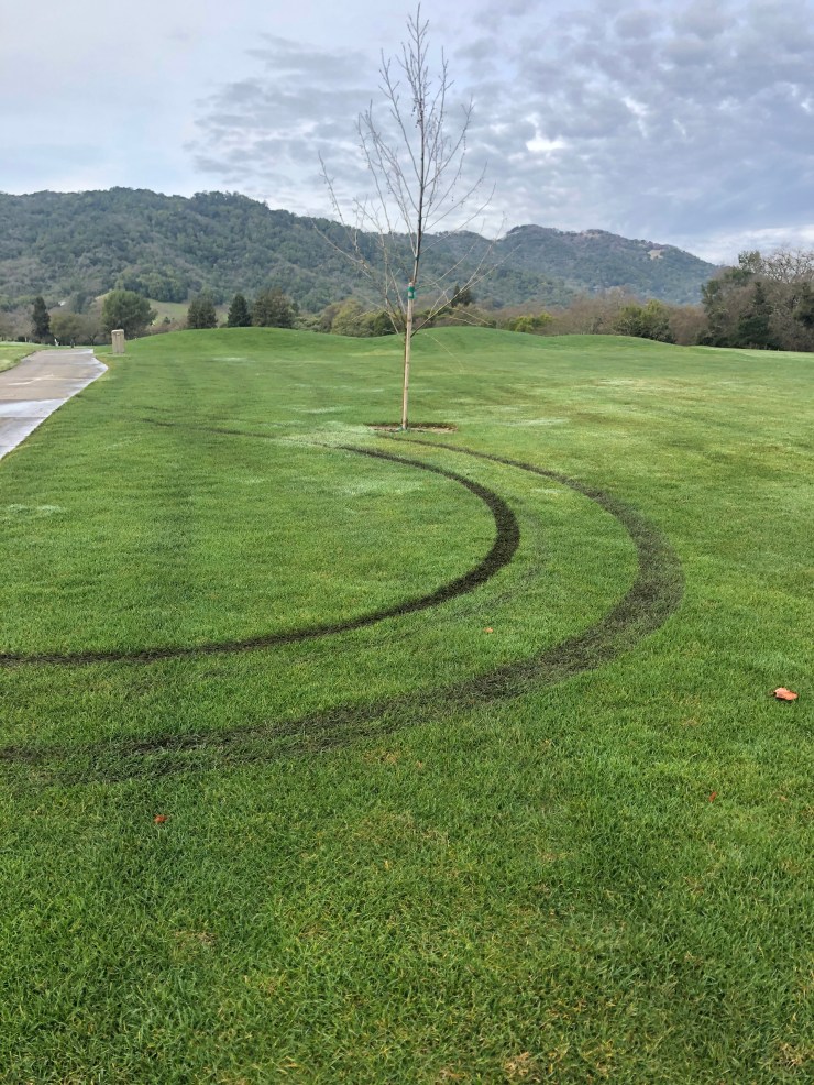 Along with those items, we would like to remind everyone to keep their golf carts on the paths as directed. As you can see from the following picture, it can be extremely wet here in Northern California this time of year. My previous blog has more details regarding the effect traffic has on wet soils. Thank you for your understanding and cooperation with this.