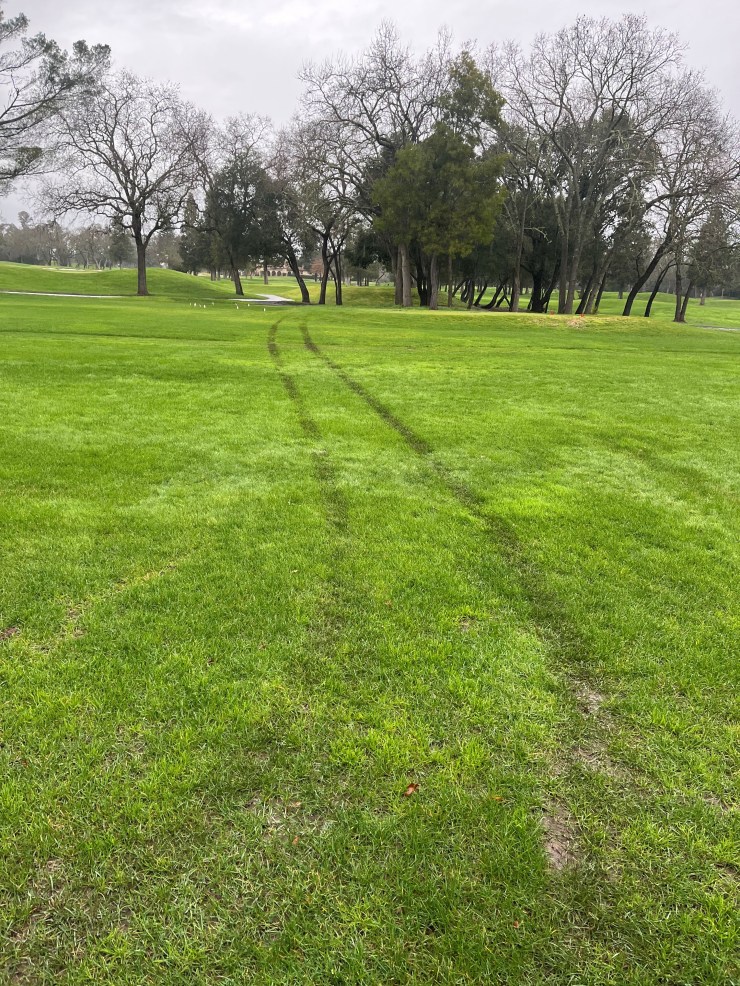 As you can see, we have received 9.47 inches of rainfall during the first six days of February. For obvious reasons golf carts will be cart path only for ALL golfers. In the picture below you can see someone did not adhere to the cart restrictions after 8.43 inches of rain in five days.